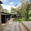 The way it is built around the tree and the canilivered step downs.