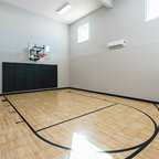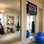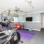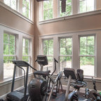ジャクソンビルのトランジショナルスタイルのおしゃれなヨガスタジオ (グレーの壁、無垢フローリング、茶色い床) の写真 — Houzz