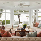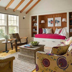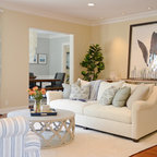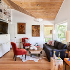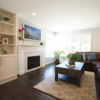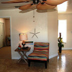 ロサンゼルスのビーチスタイルのおしゃれな独立型リビング (ベージュの壁、無垢フローリング、茶色い床) の写真 — Houzz