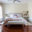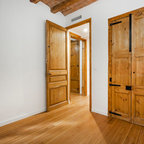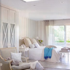他の地域のシャビーシック調のおしゃれな寝室 (ベージュの壁、無垢フローリング、茶色い床) — Houzz