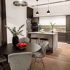 Сочетание белого, дерева и чёрных деталей