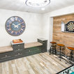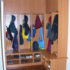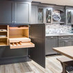 Bench Area: Mouser/Centra Cabinetry with flush inset, Reno Style doors/drawers with Carbide paint. Custom wood top to match base moulding and benches.