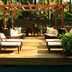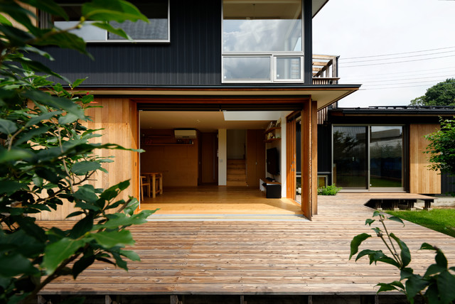 他の地域の大きい和風のおしゃれな裏庭のデッキ (日よけなし) の写真 —  Houzz