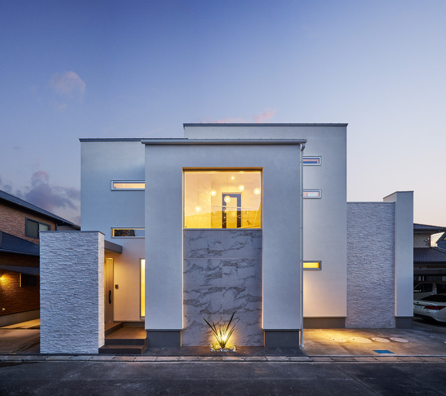 他の地域のモダンスタイルのおしゃれな白い家の写真 — Houzz