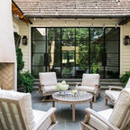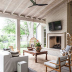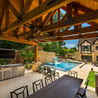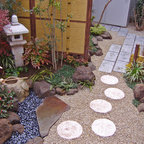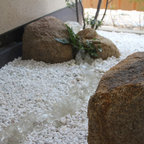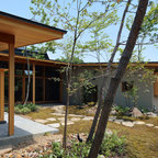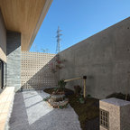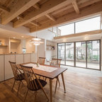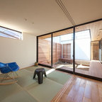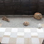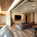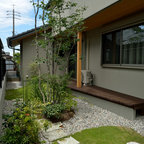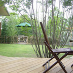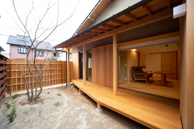他の地域の和風のおしゃれな裏庭のテラス (デッキ材舗装、張り出し屋根) の写真 —  Houzz