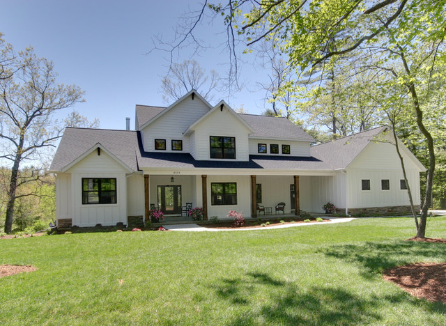 グランドラピッズのカントリー風おしゃれな家の外観 (混合材サイディング) の写真 — Houzz