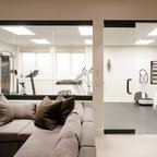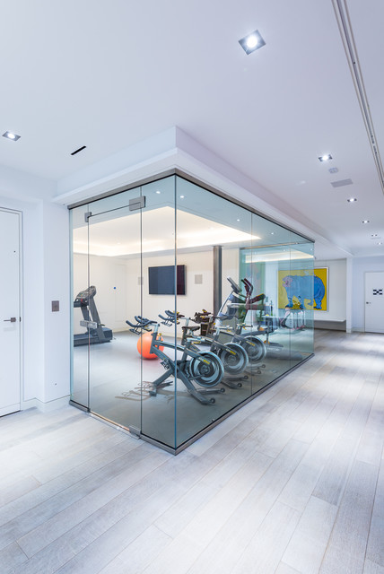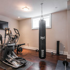 トロントの中サイズのトランジショナルスタイルのおしゃれな多目的ジム (白い壁、リノリウムの床) の写真 — Houzz