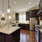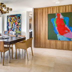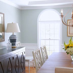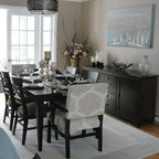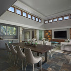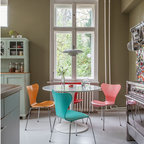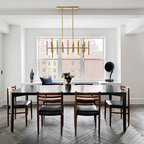 サンフランシスコの中サイズのトラディショナルスタイルのおしゃれな独立型ダイニング (白い壁、ラミネートの床、茶色い床) の写真 — Houzz