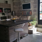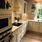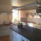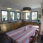 マルセイユの広いカントリー風おしゃれなキッチン (黄色いキャビネット) の写真 — Houzz