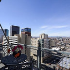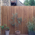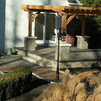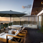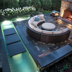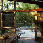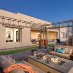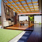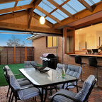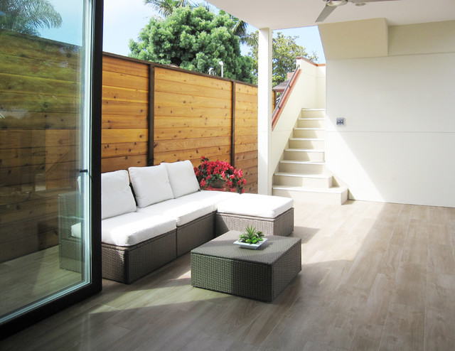 サンディエゴの中サイズのコンテンポラリースタイルのおしゃれな中庭のテラス (屋外シャワー、張り出し屋根) の写真 — Houzz
