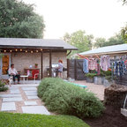 サンフランシスコのカントリー風おしゃれな裏庭のテラス (アウトドアキッチン、日よけなし) の写真 — Houzz