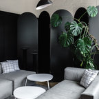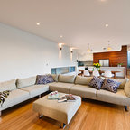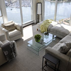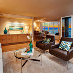 シアトルの中サイズの北欧スタイルのおしゃれなLDK (グレーの壁、淡色無垢フローリング、暖炉なし) の写真 — Houzz