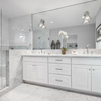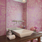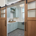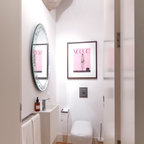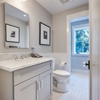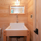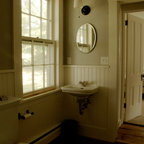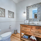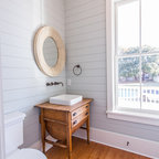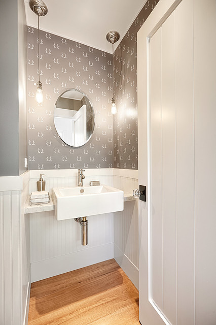 サンフランシスコのカントリー風おしゃれなトイレ・洗面所 (グレーの壁、淡色無垢フローリング) の写真 — Houzz