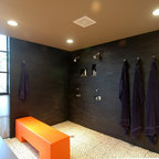 (+) marble on the walls is amazing (+) again, we kind of like the contrasting floor here