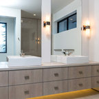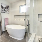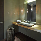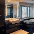 ボストンのモダンスタイルのおしゃれな浴室 (コンソール型シンク、大理石タイル) の写真 — Houzz