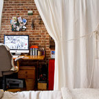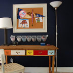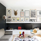Die Idee der Bücherunterbringung hinter dem Schreibtisch, die vielen Bilder ohne zu bunten Gesamteindruck und das EINE Bild rechts oben, das das Gesamtbild stimmig macht. Und der tolle rote Stuhl! Bin immer wieder geflasht von der hohen Kunst der Innenarchitekten!