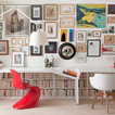 ごちゃごちゃして見える資料や本を足下に収納2人で座ってもゆったりと使えるデスクの下に、大容量の本棚を設置。どんどん増えていく資料本を詰め込んでも、目立たないのが◎。壁面には、隙間を埋めるようにたくさんのフレームをディスプレイ。好きなものや、アイデアソースを飾れば、楽しい気分で仕事ができそうです。
