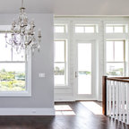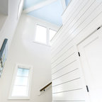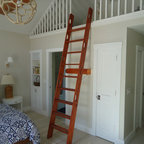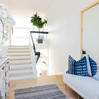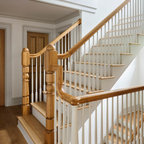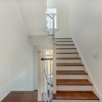 ボストンの木のビーチスタイルのおしゃれな階段 (フローリングの蹴込み板) の写真 — Houzz