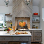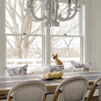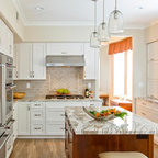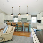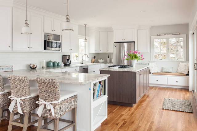 ボストンのビーチスタイルのおしゃれなキッチン (白いキャビネット、無垢フローリング) の写真 — Houzz