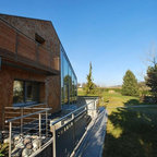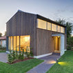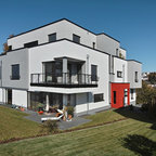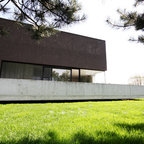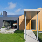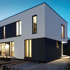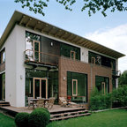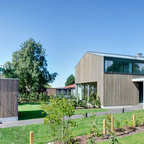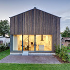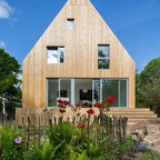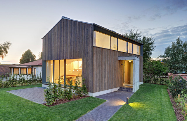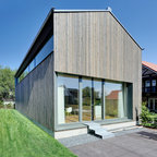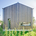 ベルリンのコンテンポラリースタイルのおしゃれな家の外観 (木材サイディング、切妻屋根、茶色い外壁) の写真 — Houzz