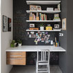 テイストを合わせるデスクやデスク周りのテイストに合った椅子を選べば失敗も少ないはず。メタルの椅子はブラックボードペイントで塗られた壁や、オープンの棚に見られるややインダストリアルな風合いのデスクコーナーに自然と溶け込んでいます。サイズ感も、大きすぎず、小さすぎず、ぴったりです。