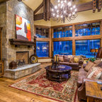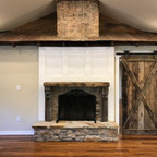 Fireplace idea....rock doesn't go all the way up interior.