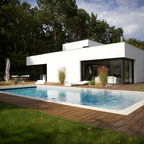 モンペリエのモダンスタイルのおしゃれな家の外観 (陸屋根) の写真 — Houzz