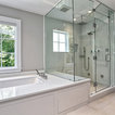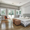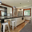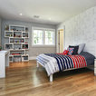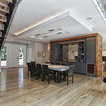 こちらは、木のパネリングを壁面だけでなく天井まで続くデザインにしたことで、独立した印象になっています。机に座っている時は、別空間にいるように感じられ、また木の温もりでホッとできるようなスペースです。部屋全体と調和しながら素敵なアクセントにもなっている、完成度の高い書斎スペースです。