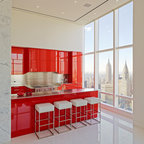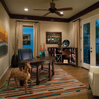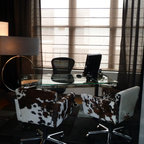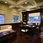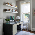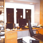 12. 明るいデスク作業には適切な照明が不可欠ですが、アームの曲がる卓上ライトだけがデスク照明ではありません。こちらの作業スペースは、壁から天井まで包みこむウォールナットのパネルと埋め込み式のライトで、温かな光に照らされます。オープンな空間にあるデスクなら、デスクの上の調光スイッチで調整して、作業中だけその場所を明るく照らし、使わない時には目立たなくすることもできます。教えてHouzzみなさんはどんな作業スペースを使っていますか?コメント欄で写真を共有してください。