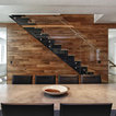 広いリビングから階段ホールに通じるオープンなスペースの一角に、木のパネリングを施した壁が一面。ここに机と棚を造り付けて、お気に入りの椅子を組み込んだら、開放感のあるホームオフィスが完成。カフェで仕事をする人も多い昨今、ノートパソコンでの作業や、書き物をしたりの仕事は案外、旧来の書斎のようなクローズドスペースでなくてもはかどるものです。