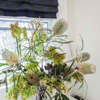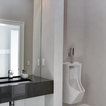 少量の黒を上手に分散させた事例。白と木のナチュラル色だけではぼんやりとしてしまいがちですが、控えめに黒を分散することで引き締めの効果があります。