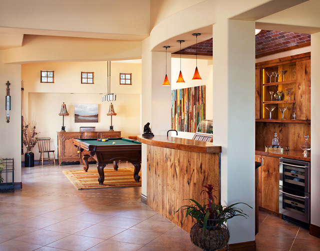 Pool table, bar, terra cotta and light walls