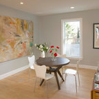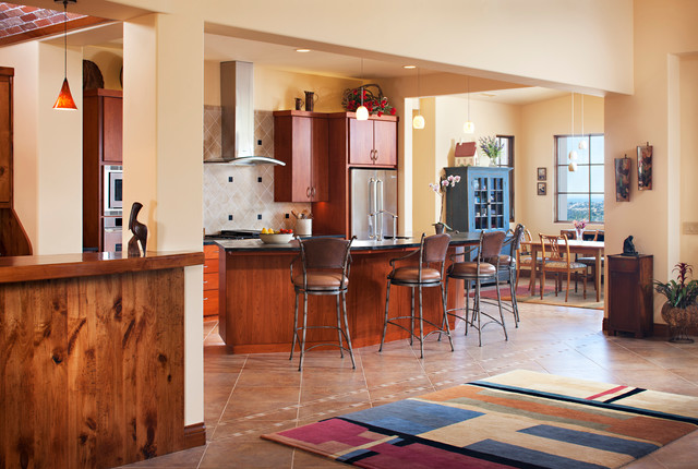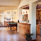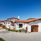 Centered on seamless transitions of indoor and outdoor living, this open-planned Spanish Ranch style home is situated atop a modest hill overlooking Western San Diego County. The design references a return to historic Rancho Santa Fe style by utilizing a smooth hand troweled stucco finish, heavy timber accents, and clay tile roofing. By accurately identifying the peak view corridors the house is situated on the site in such a way where the public spaces enjoy panoramic valley views, while the master suite and private garden are afforded majestic hillside views.