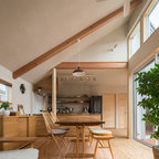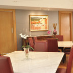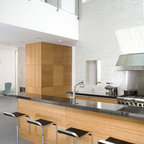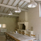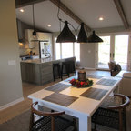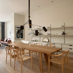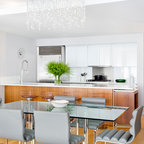 ニューヨークの巨大なコンテンポラリースタイルのおしゃれなダイニングキッチン (白い壁、コンクリートの床) の写真 — Houzz