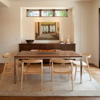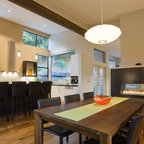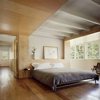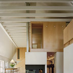 This historic gambrel barn was partially destroyed in a fire. The owners commissioned Specht Harpman to design the rebuild so that the barn would remain contextual with the other buildings on the 8-acre site while the interior was radically restructured to create a free volume. Polished concrete floors blend with exposed maple framing and custom woodwork to create both elegance and comfort.