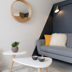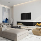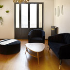パリの大きいコンテンポラリースタイルのおしゃれなLDK (ベージュの壁、テレビなし) の写真 — Houzz