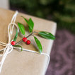 Wrap your presents in natural elements...brown craft paper, twine, and a holly twig.