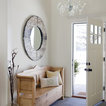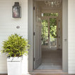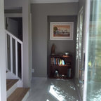 pretty color scheme w/grey floors and white door/walls