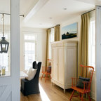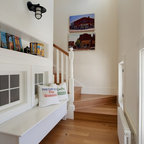 Key to the successful design were the homeowner priorities of family health, energy performance, and optimizing the walk-to-town construction site. To maintain health and air quality, the home features a fresh air ventilation system with energy recovery, a whole house HEPA filtration system, radiant & radiator heating distribution, and low/no VOC materials. The home’s energy performance focuses on passive heating/cooling techniques, natural daylighting, an improved building envelope, and efficient mechanical systems, collectively achieving overall energy performance of 50% better than code. To address the site opportunities, the home utilizes a footprint that maximizes southern exposure in the rear while still capturing the park view in the front.