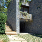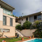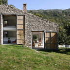 バルセロナの大きいラスティックスタイルのおしゃれな家の外観 (石材サイディング、茶色い外壁) の写真 — Houzz