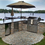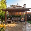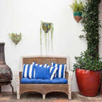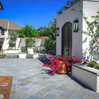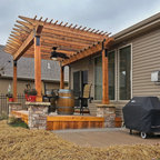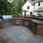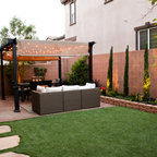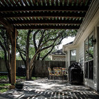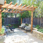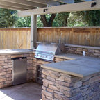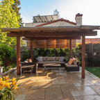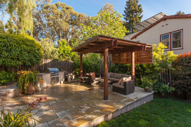 サンフランシスコの小さいエクレクティックスタイルのおしゃれな裏庭のテラス (アウトドアキッチン、天然石敷き、パーゴラ) の写真 — Houzz