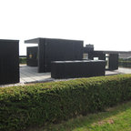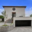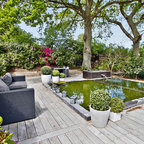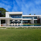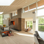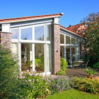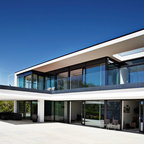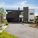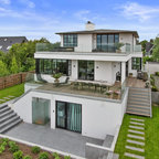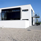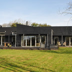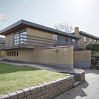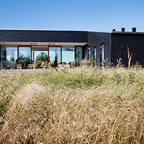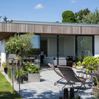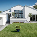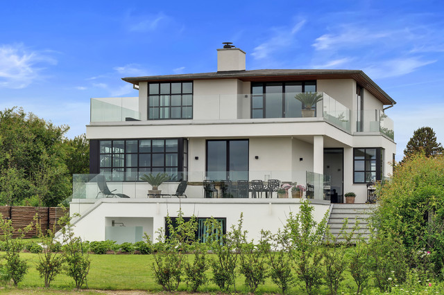 ウィルトシャーのコンテンポラリースタイルのおしゃれな家の外観 (コンクリート繊維板サイディング、ベージュの外壁、陸屋根) の写真 — Houzz