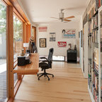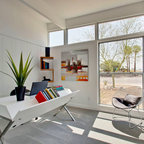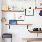 4. 収納ケースを使ったデスク子供部屋にぴったりサイズのこちらのデスクは、天板に廃木材を使用し、丈夫な金属製収納ケースを片方の脚として使っています。デスクの下にオープンな収納ケースがあることで、引き出しを開けるよりも簡単に出し入れでき、図画工作道具などを入れておくのにも便利。