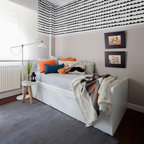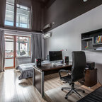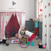 デスク前の壁を好きな色にペイントする小物選びがキュートでも、深いブルーの壁紙で落ち着いた空間に。青は心を落ち着かせる色とも言われているので、仕事部屋にぴったりです。積み重ねたスチールコンテナをデスクの脚にするアイデアも素敵。終わった仕事の紙資料を一番下のコンテナに入れていって、ある程度たまったらまとめて捨てる、など整理のルールを決めるとよさそう。