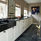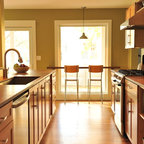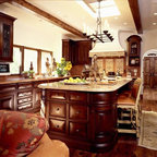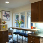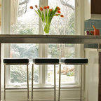 This counter is too rustic but I like the idea of barstools on a bar across the back windows in the breakfast room.