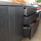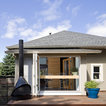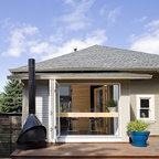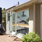 A folding glass wall creates true indoor/outdoor space, while bringing natural light and air into the kitchen.