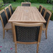 The Royal set is a little different in that it uses PVC backs in conjunction with solid teak. They are comfortable chairs and the table will seat 8 people quite comfortably. Temporarily sold out - but they will be back again!