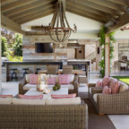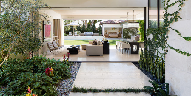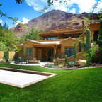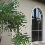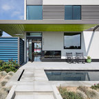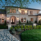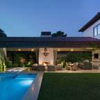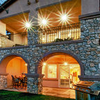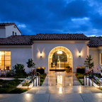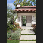 サンディエゴの地中海スタイルのおしゃれな家の外観 (漆喰サイディング、寄棟屋根、戸建、瓦屋根) の写真 — Houzz