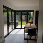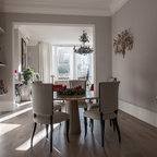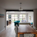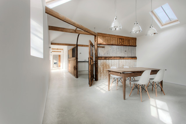 ハンプシャーのモダンスタイルのおしゃれなダイニング (コンクリートの床、白い壁、グレーの床) の写真 — Houzz