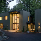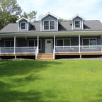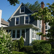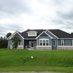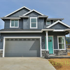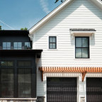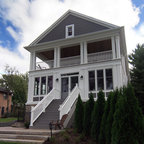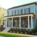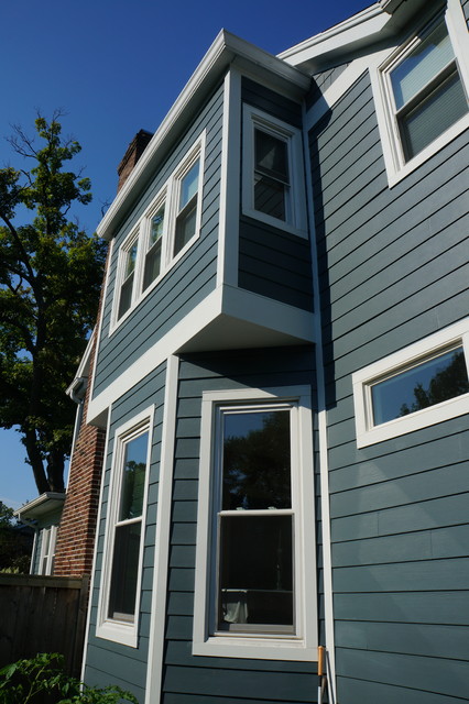 シカゴのカントリー風おしゃれな家の外観 (コンクリート繊維板サイディング、青い外壁) の写真 — Houzz